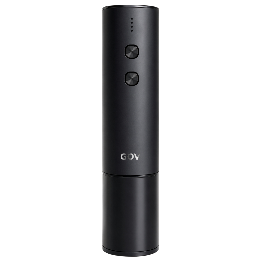 Der GOV RVS Regular | Der elektrische Korkenzieher entfernt einen Korken einfach und ohne zu zerbrechen aus einer Weinflasche, ein cooles und praktisches Küchengerät! Der Korkenzieher ist wiederaufladbar, sodass lästige Batterien der Vergangenheit angehören. Mit einer Batterie können Sie 50 Flaschen öffnen. Das Smart-Switch-Design des elektrischen Korkenziehers sorgt dafür, dass Sie zum Entfernen des Korkens nur zwei Klicks benötigen, sodass Sie den Knopf nicht länger gedrückt halten müssen. Der Stainless Steel Regular verfügt über ein robustes Edelstahlgehäuse , was ihn robust und robust macht. Der Batteriestatus des automatischen Korkenziehers lässt sich bequem über die 4-stufige Leistungsanzeige überwachen. Die Kombination aus minimalistischem Design und mattschwarzem Finish macht diesen Korkenzieher sehr stilvoll und verleiht ihm einen zeitlosen Look.